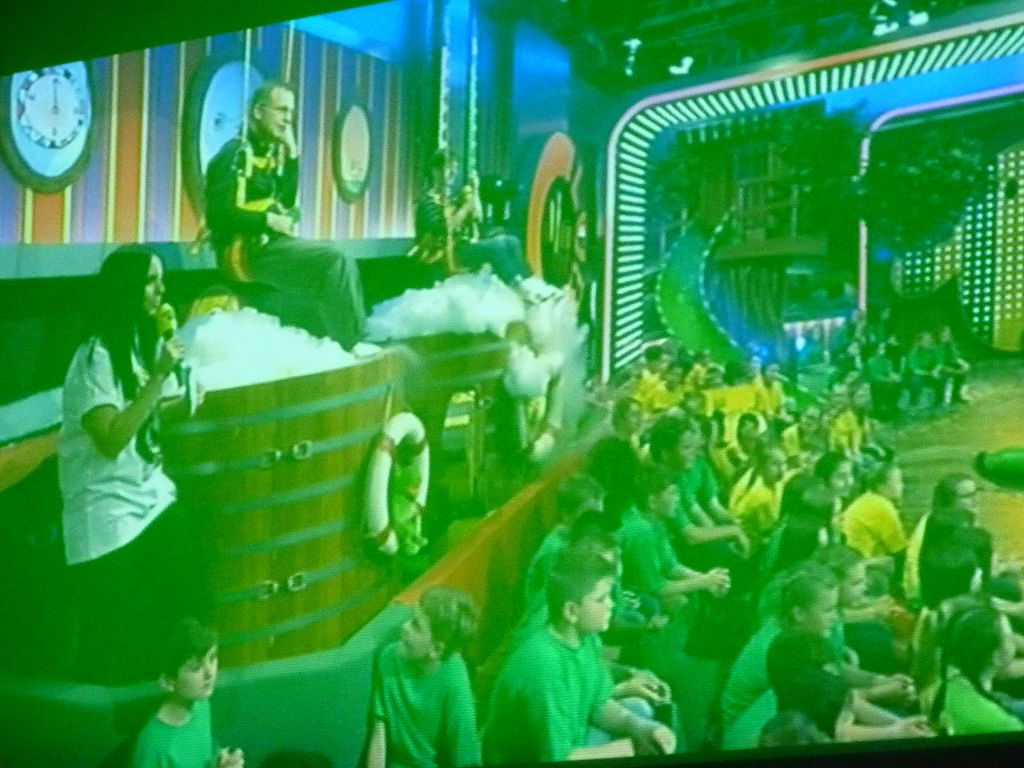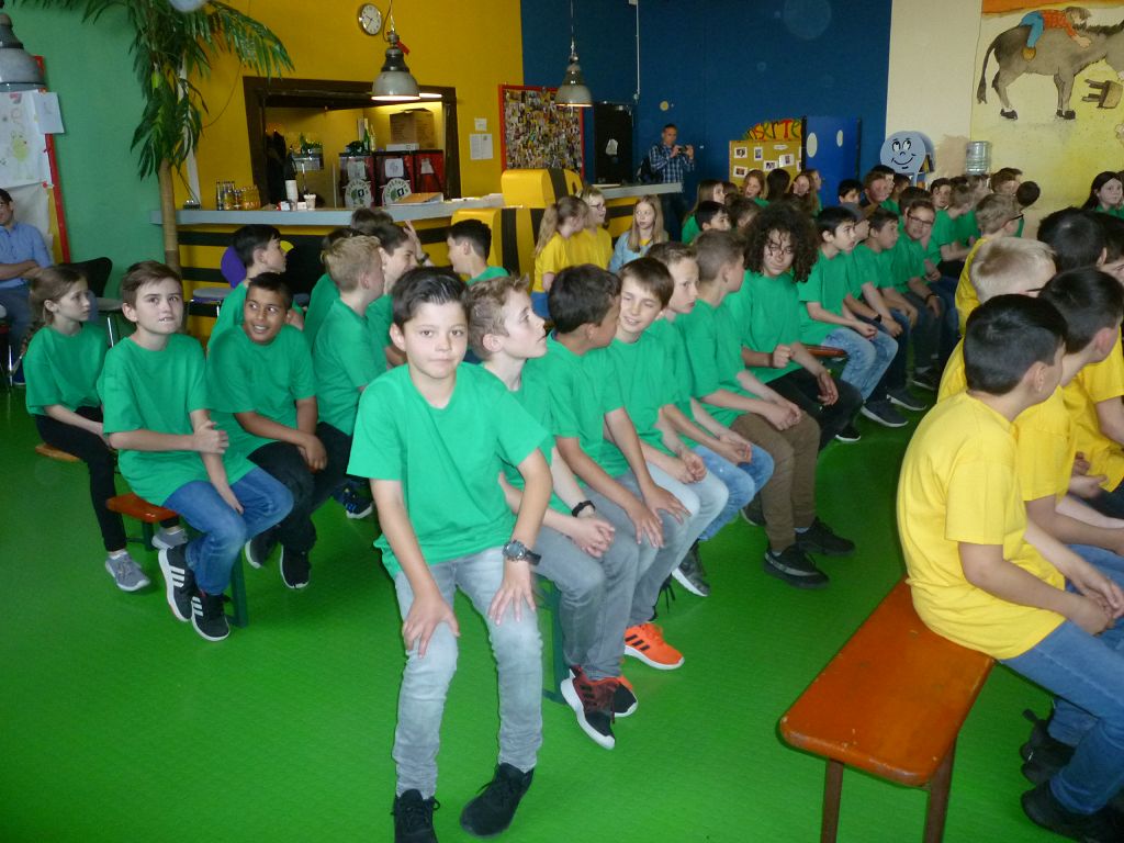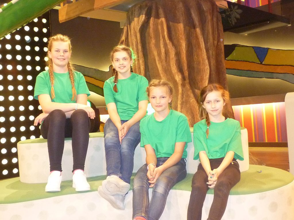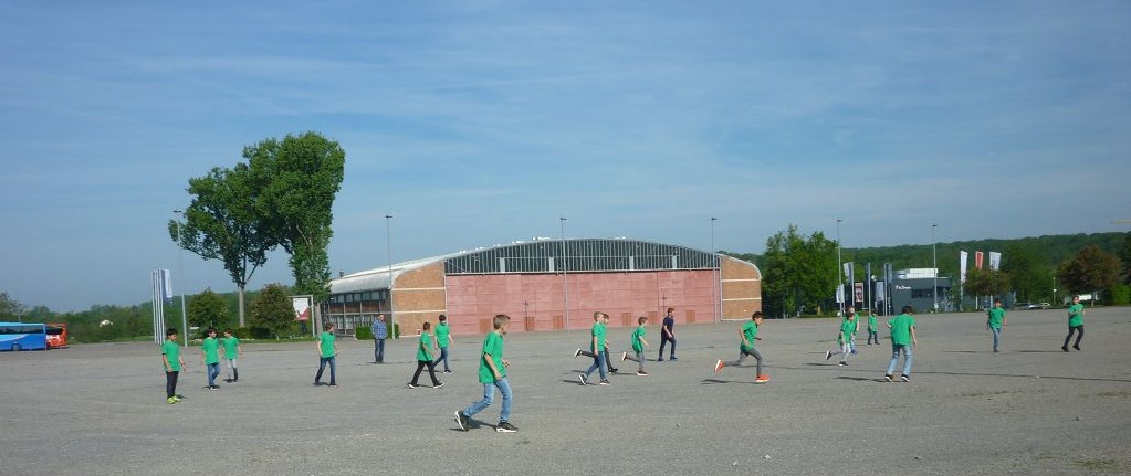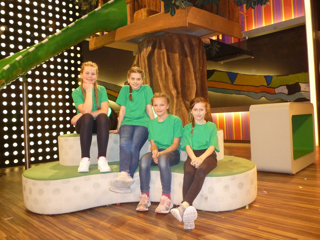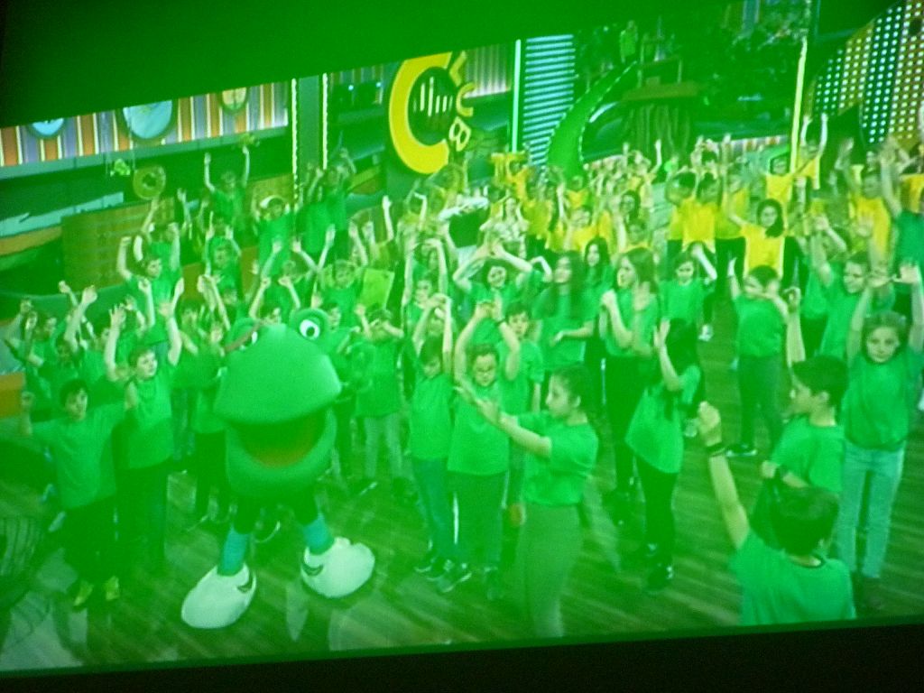 Kurze Zeit später kamen schon vier vom Team des Tigerenten-Clubs. Eine holte direkt die „Spielekinder“ und unseren Lehrer Herrn Krause, der auch im TV zu sehen sein wird, ab. Mit den anderen Dreien sind wir noch eine Zeit lang Seil gesprungen, während unsre kleine Abordnung bereits einen Probedurchgang machte. Endlich wurde es spannend und die Drei haben uns ins Studio zu den Moderatoren Jess und Johannes mitgenommen. Die Spiele begannen und wir hielten uns tapfer gegen unsere Konkurrenz aus Pfalzgrafenweiler in der Nähe von Freudenstadt. Von den prominenten Gästen der Sendung konnten wir noch einige Hip Hop Moves lernen. Vielen Dank an #move2: Katulka, Katja und René!