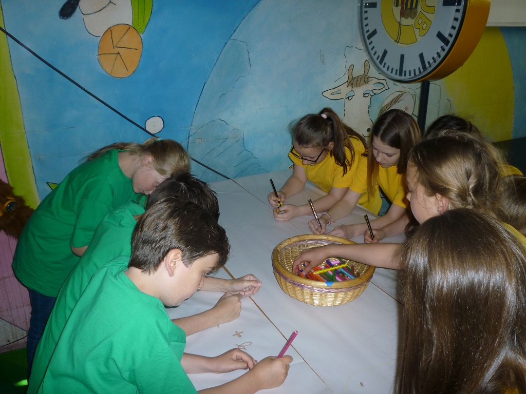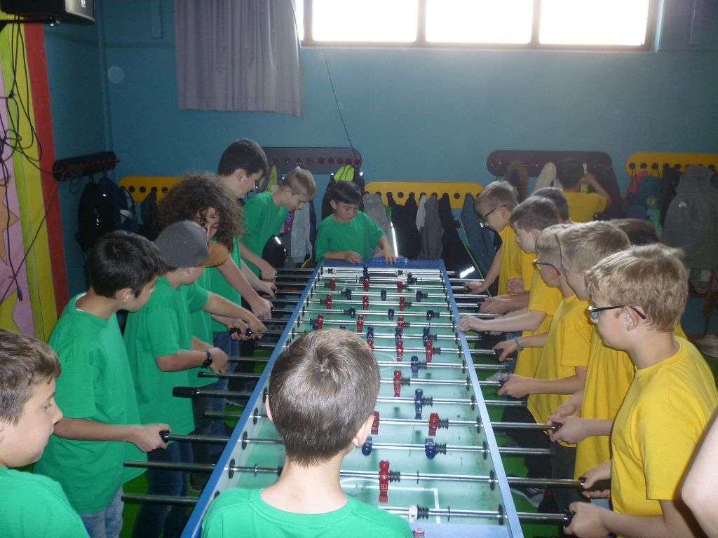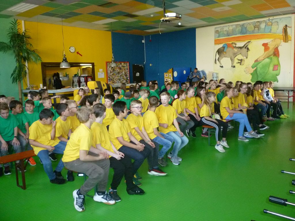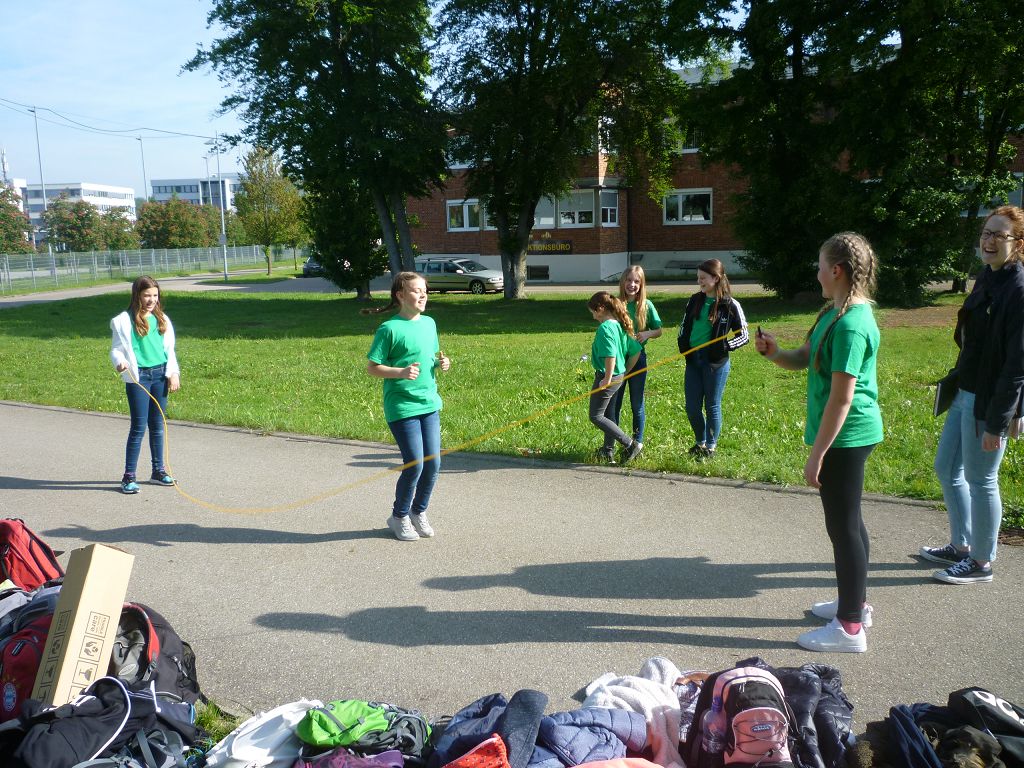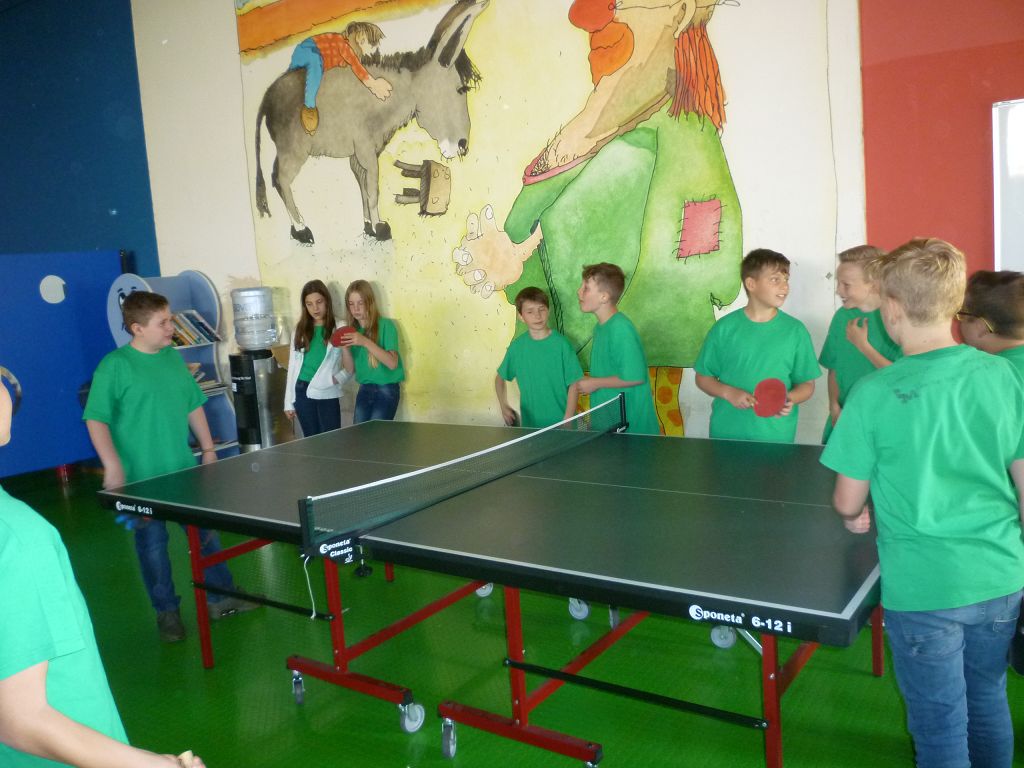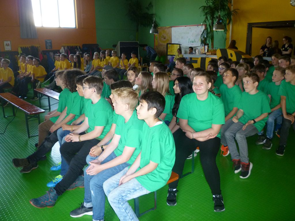 Kurze Zeit später kamen schon vier vom Team des Tigerenten-Clubs. Eine holte direkt die „Spielekinder“ und unseren Lehrer Herrn Krause, der auch im TV zu sehen sein wird, ab. Mit den anderen Dreien sind wir noch eine Zeit lang Seil gesprungen, während unsre kleine Abordnung bereits einen Probedurchgang machte. Endlich wurde es spannend und die Drei haben uns ins Studio zu den Moderatoren Jess und Johannes mitgenommen. Die Spiele begannen und wir hielten uns tapfer gegen unsere Konkurrenz aus Pfalzgrafenweiler in der Nähe von Freudenstadt. Von den prominenten Gästen der Sendung konnten wir noch einige Hip Hop Moves lernen. Vielen Dank an #move2: Katulka, Katja und René!