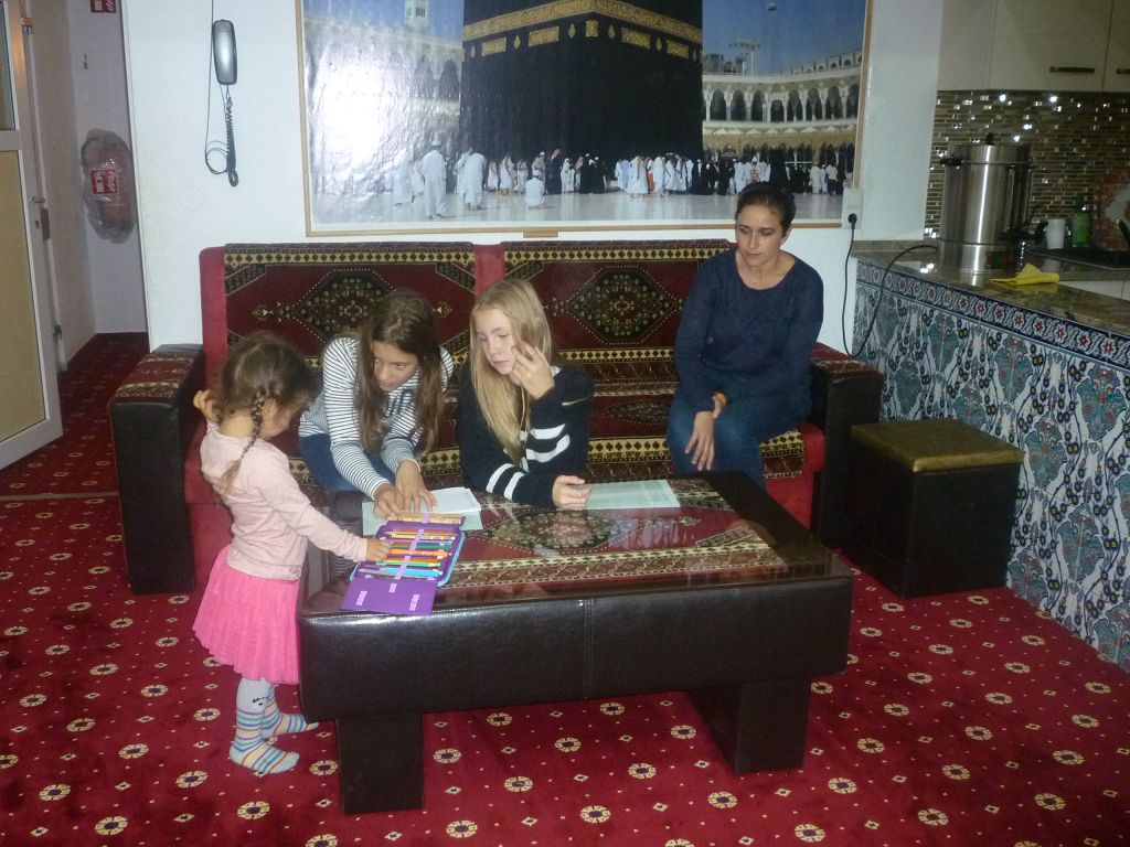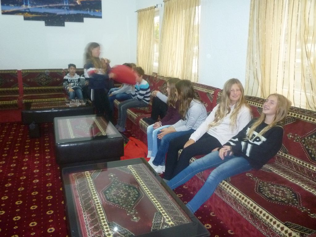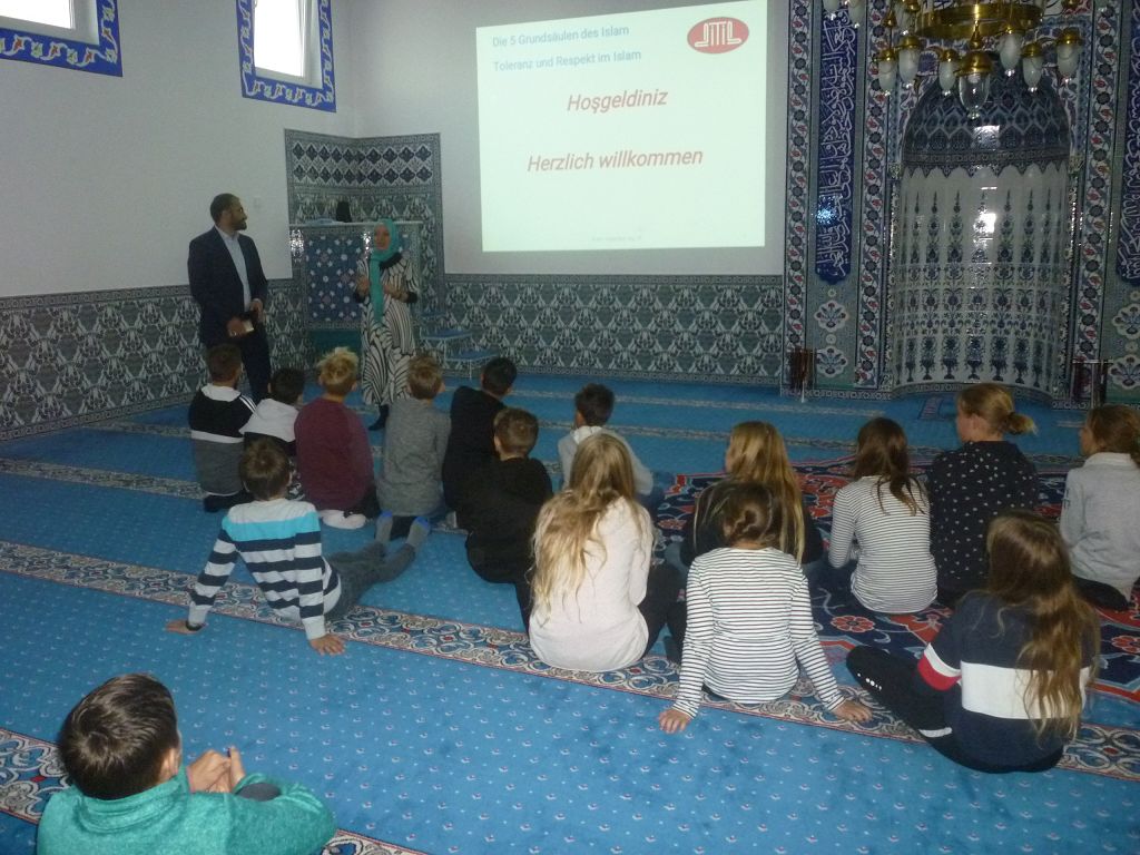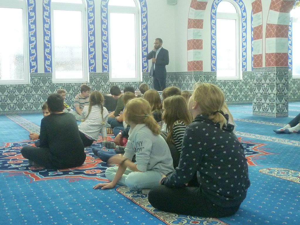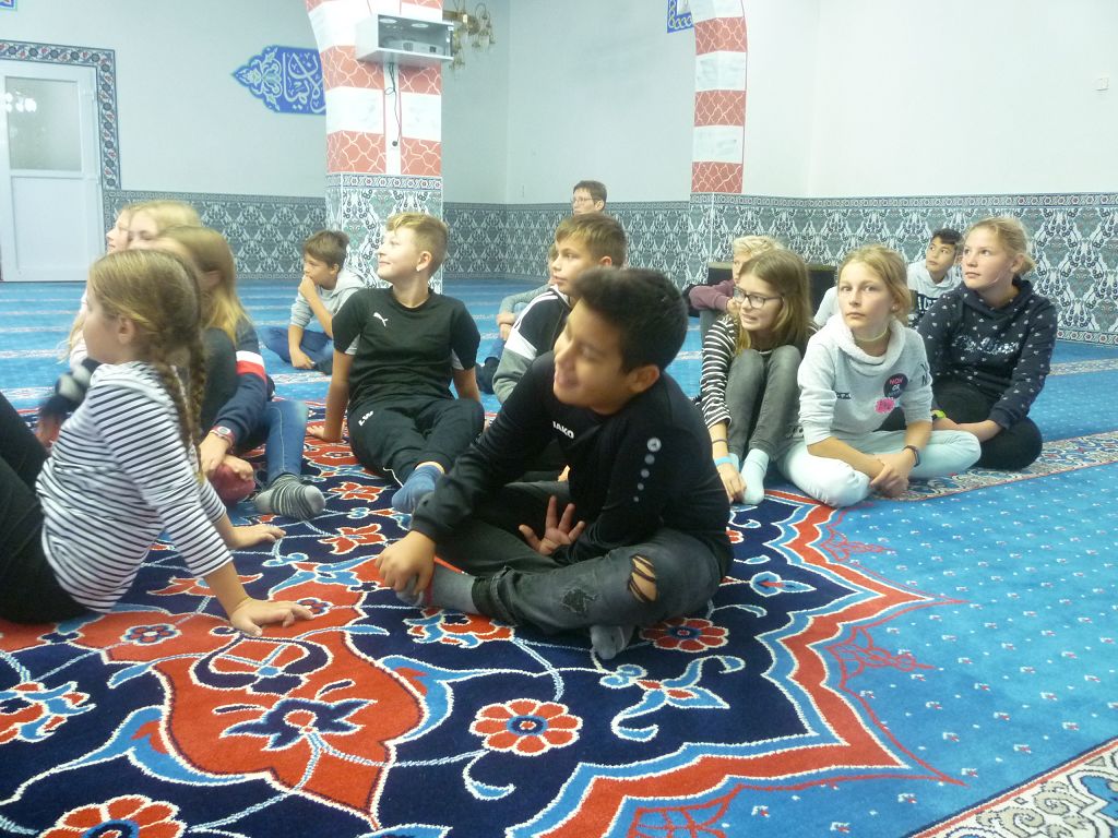 denn die Räume waren sehr schön und der Imam hat uns alles gut erklärt. Wir haben gestaunt, wie prachtvoll die Teppiche auf dem Boden und die Verzierungen an den Wänden waren und dass wir uns im Gebetsraum ganz frei bewegen, ja sogar spielen durften. Nach der Mittagspause stieg die Aufregung, denn alle freuten sich riesig auf die Bad Saulgauer Trampolinhalle, die erst vor Kurzem eröffnet wurde.