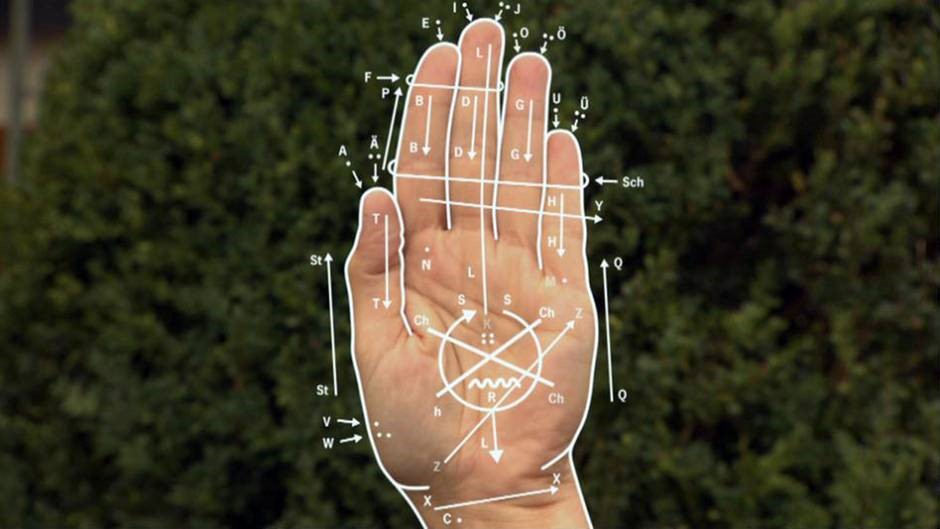 Auf jeden Fall kann er besser schreiben als wir „lormen“ (siehe unten): das ist die Zeichensprache, die wir ziemlich schwer, aber auch voll cool finden!