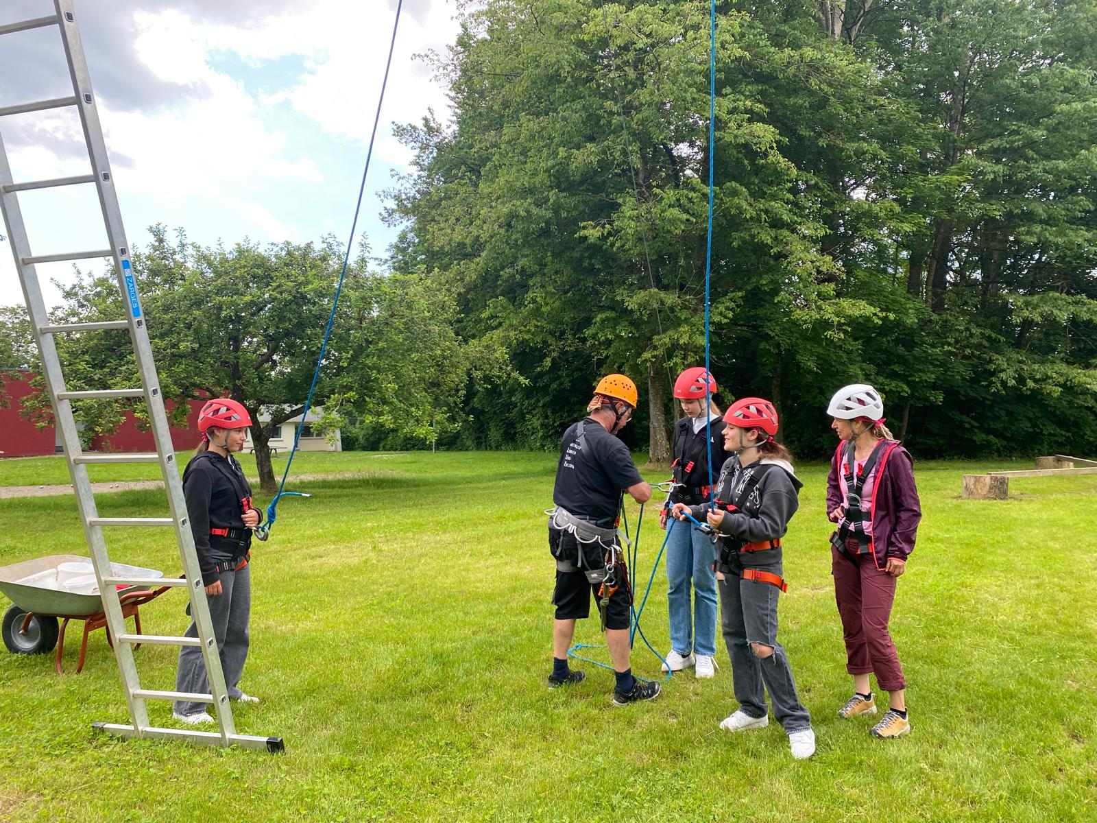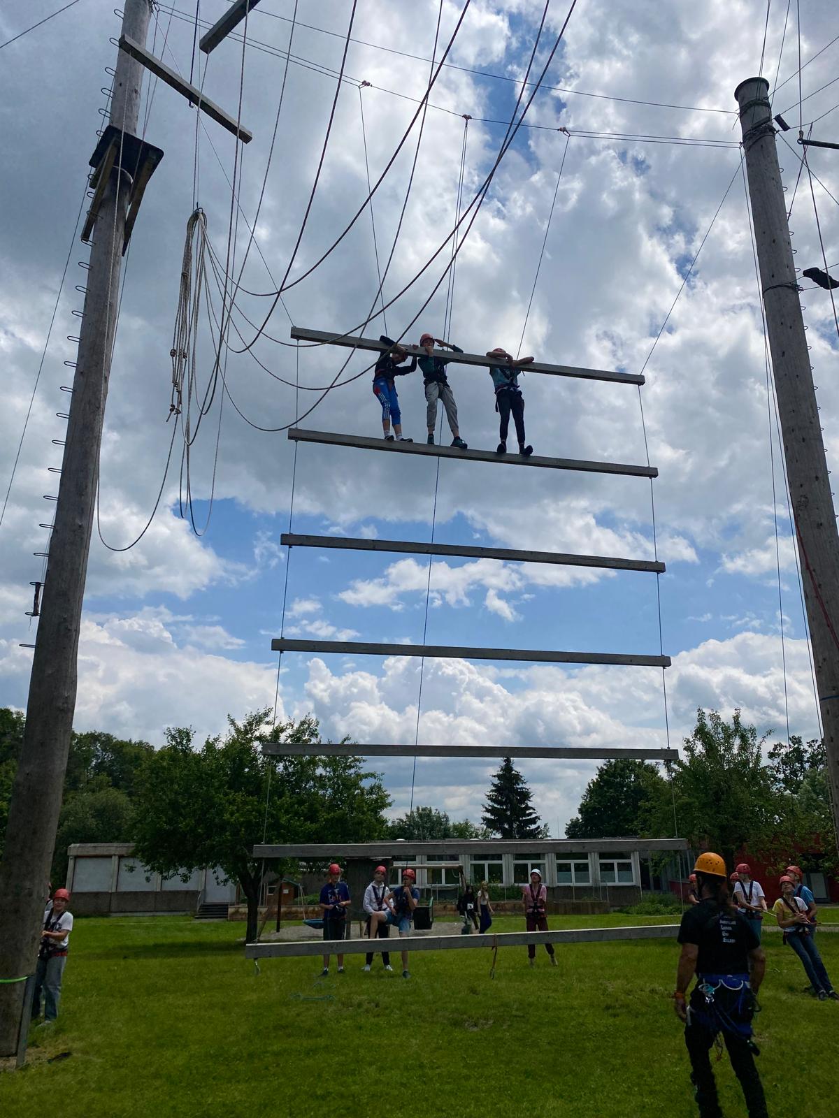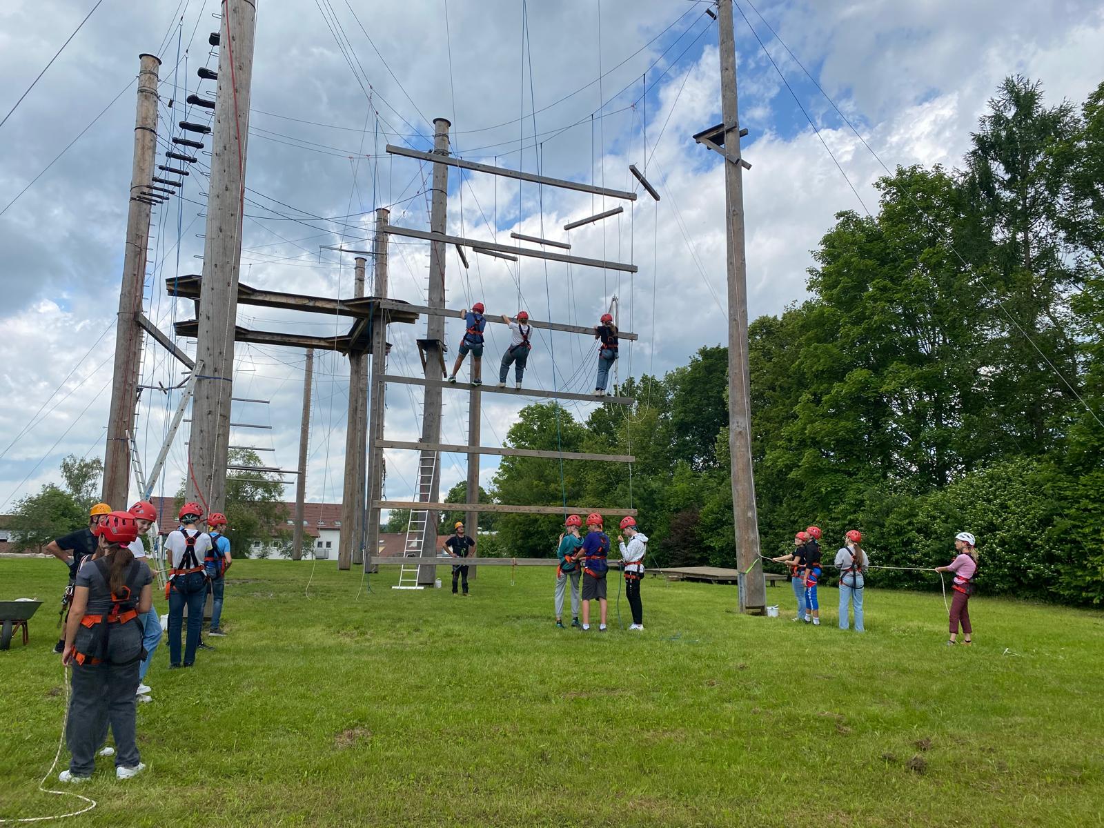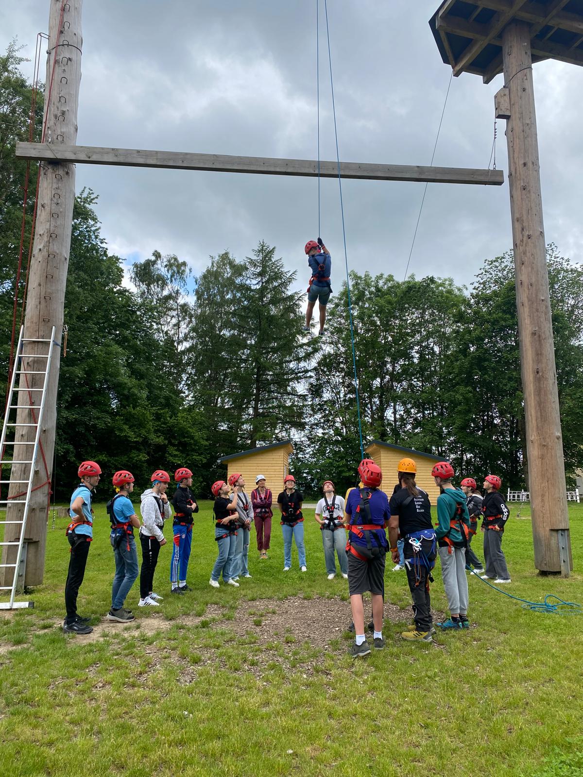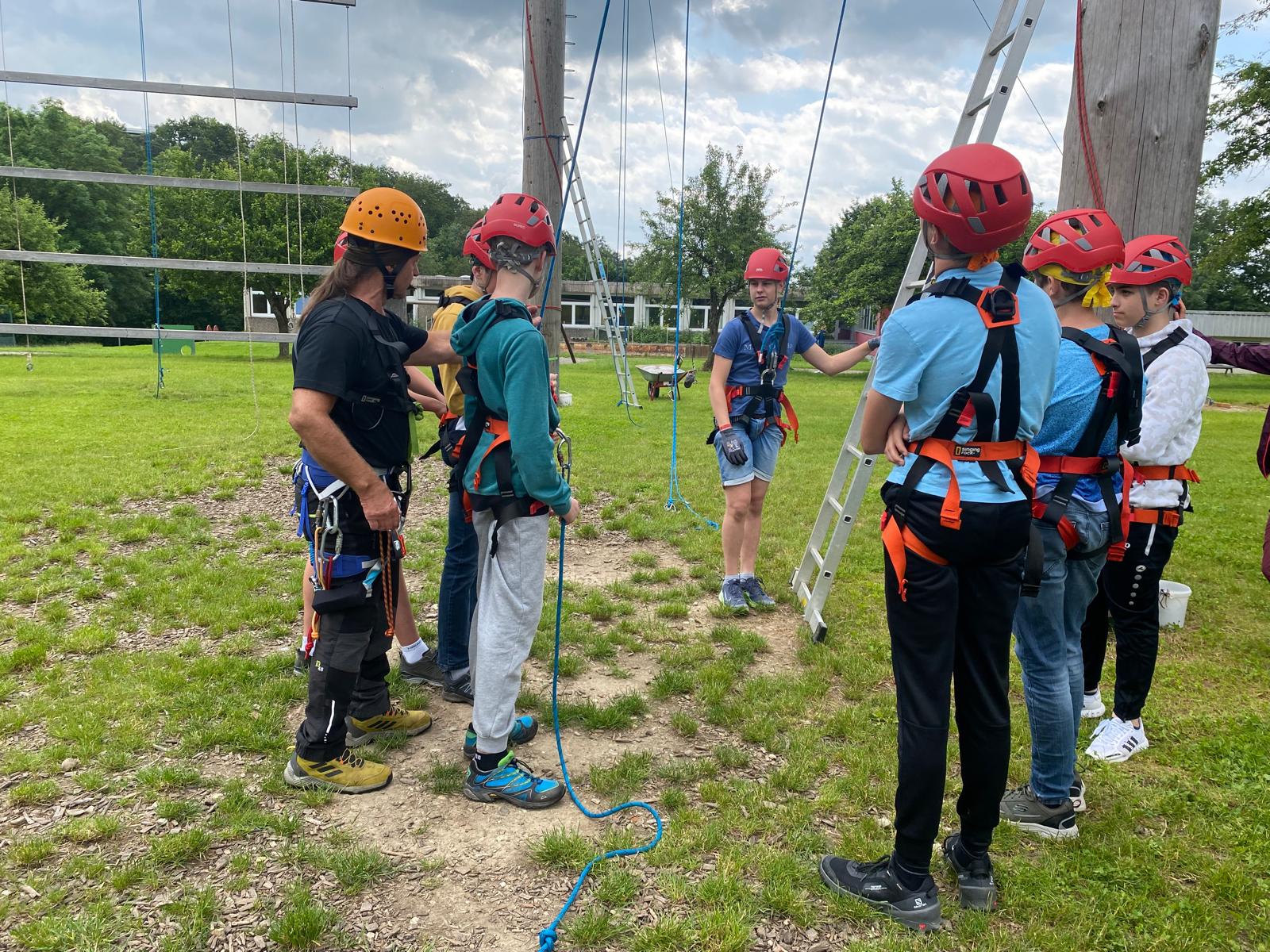 Nach den Pfingsferien war die Klasse 8b mit Fr. Paulus und Fr. Westermann im Hochseilgarten. Hier gibt es erste Eindrücke des Tages, ein Bericht folgt noch!