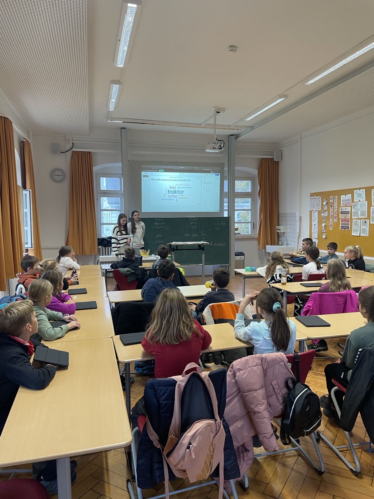 Hier ist unser Wandertag . Auf diesem Bild werden uns von zwei ehemahligen Gymnasiasten erste Dinge über Landwirtschafft beigebracht .