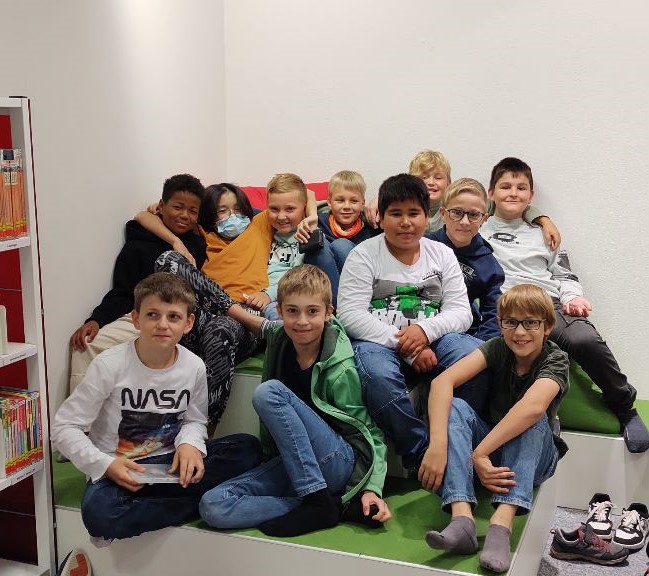 Am Mittwoch, den 4.10.2023 sind wir mit unserer Klasse in die Stadtbücherei Mengen gelaufen. Als wir angekommen sind, hat uns Frau Hapke ein paar Bücher vorgestellt. Danach hat man uns mit einem Quiz überrascht. Wir haben dann iPads bekommen und