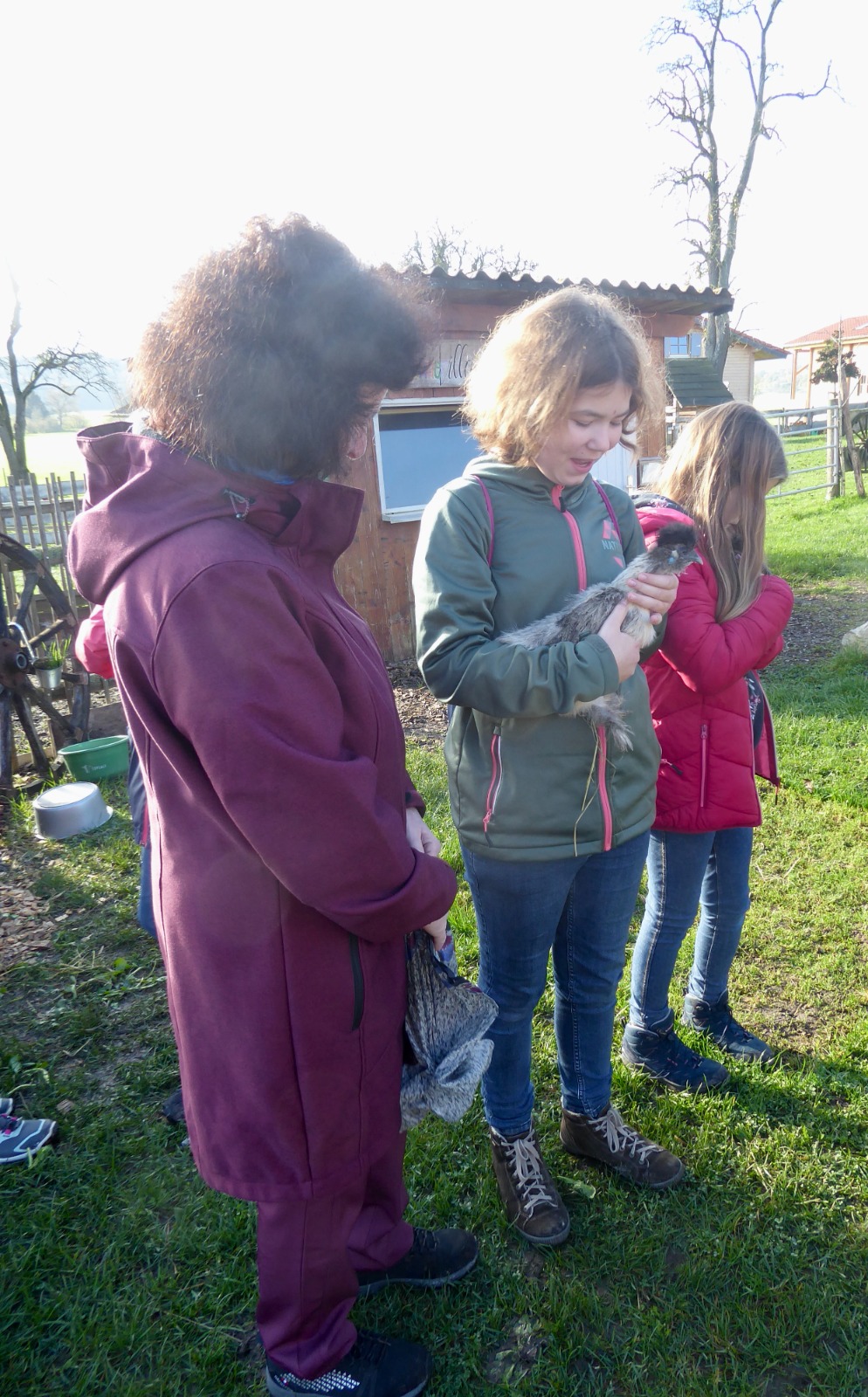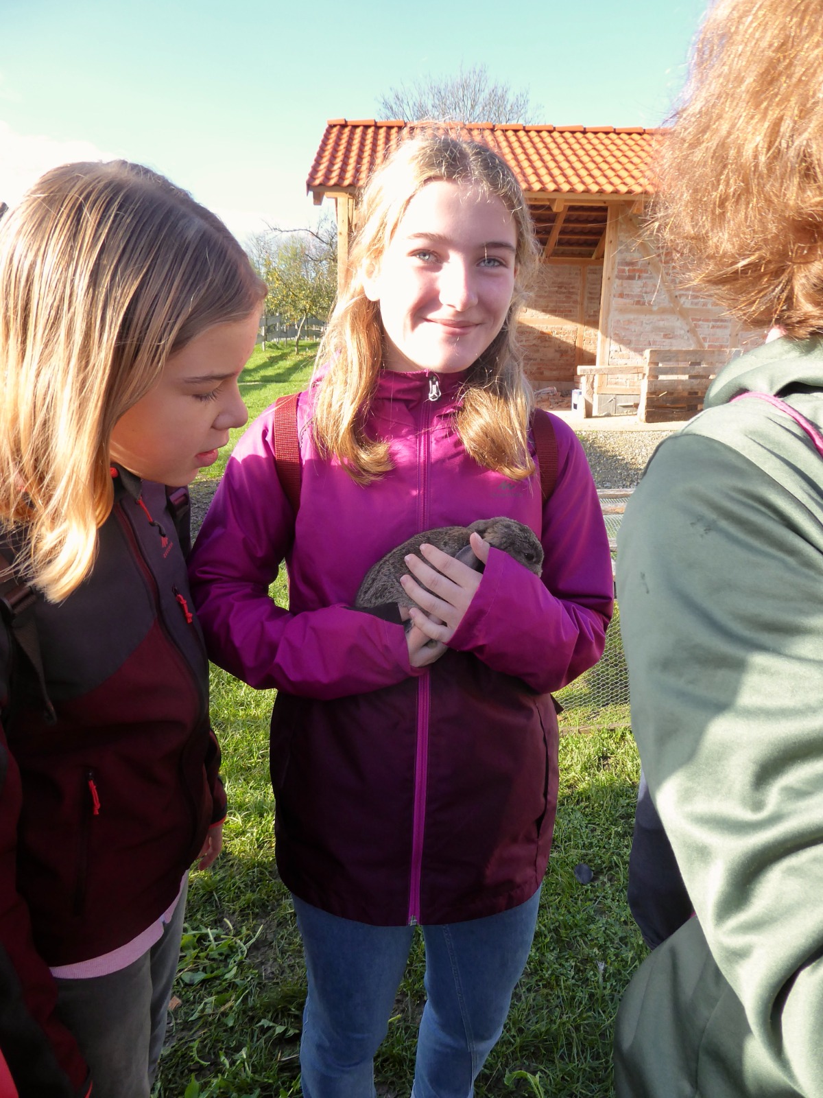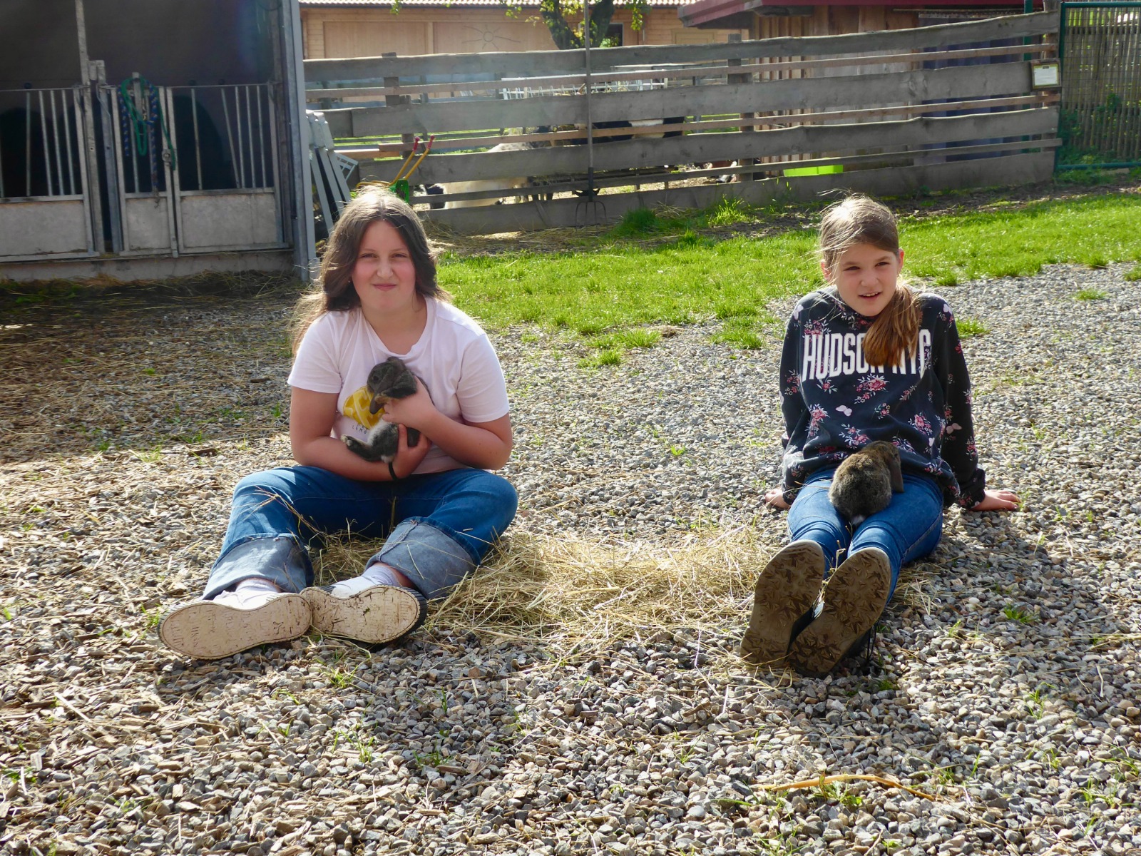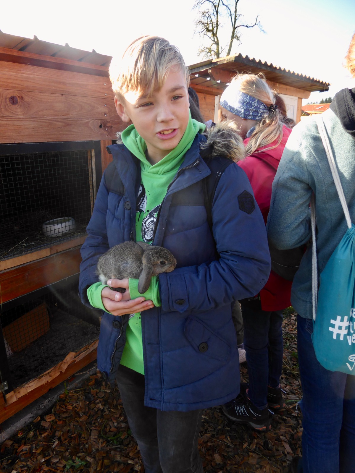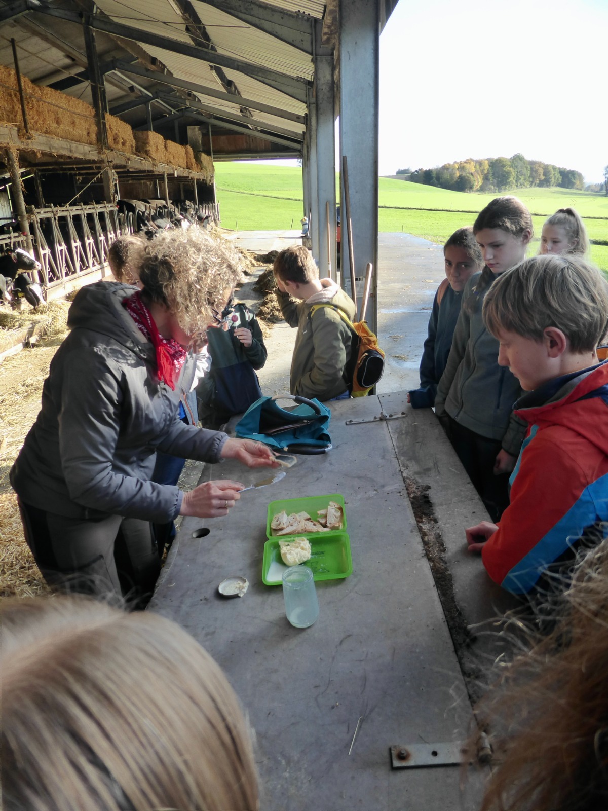 Zuerst haben wir uns um 8.20 Uhr am Fahrradständer mit Fr. Tritschler und Fr. Kacprzak getroffen. Von dort aus sid wir zunächst in Richtung Realschule gelaufen und dann weiter in den Wald Richtung Granheim. Nach einem etwa 30-minütigen Fußmarsch sind wir beim Ferienhof Neher angekommen und haben von der Bäuerin eine Hoftour bekommen. Wir haben die Kühe angeschaut und sie hat uns erklärt, wie die Kühe gemolken werden. Wir durften auch noch eine Woche alte Kälber anschauen und nebenbei haben wir Sahne in einem Glas zu Butter geschüttelt. Als die Butter fertig war, durften wir sie auf leckerem Brot probieren! Danach durften wir uns frei auf dem Hof bewegen und die vielen Tiere ansehen und streicheln, wie z.B. Babyhasen, Seidenhühner, Esel, Ziegen, Katzen, Ponys und Pferde und es gab auch süße Meerschweinchen. In einer großen Scheune waren viele Strohballen zu einer Burg aufgestapelt. An der Decke hing sogar eine Reifenschaukel und es gab eine Kletterwand. Im Hofautomaten konnte man sich mit Eis, Snacks und Getränken verköstigen. Es war ein toller Tag!