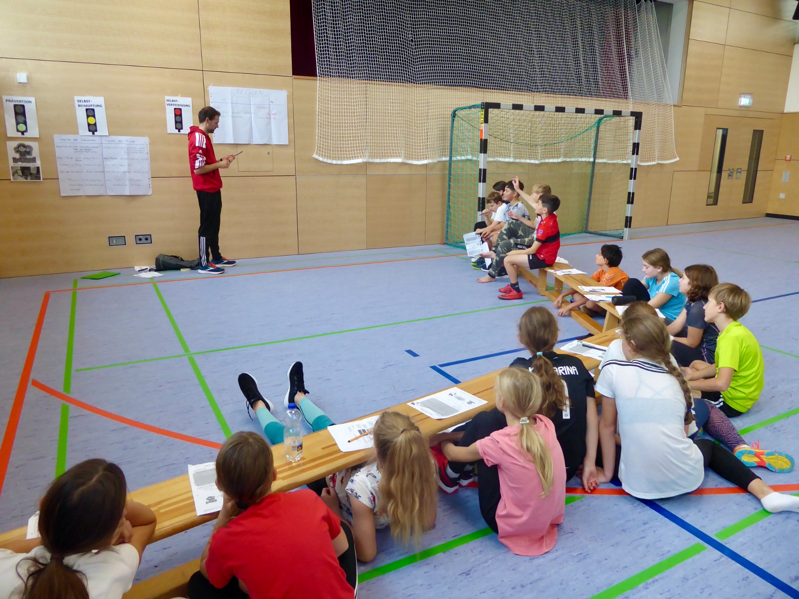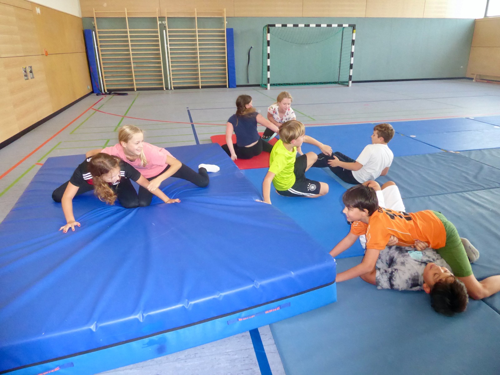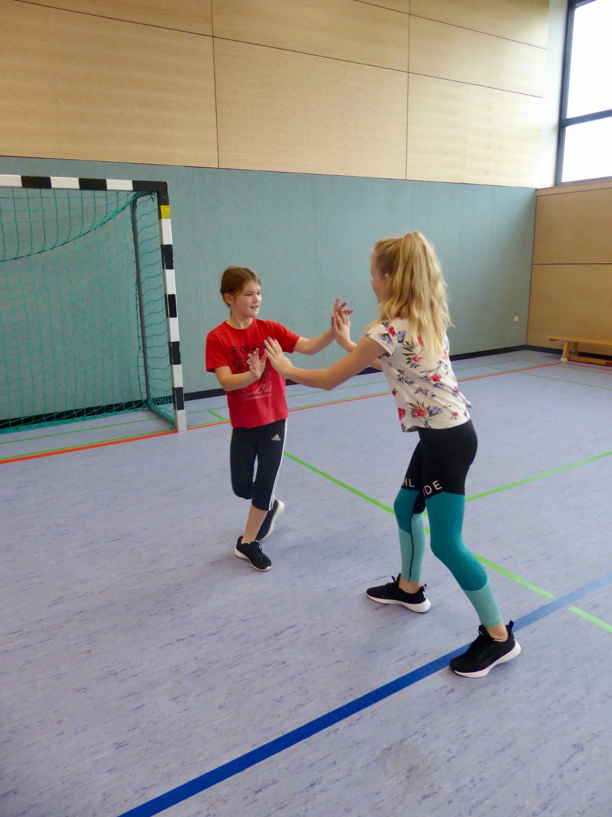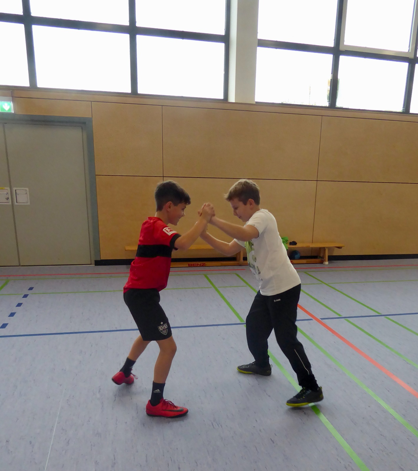 Am Freitag, den 28.10. haben wir in der Sporthalle geübt, wie wir uns verteidigen, wenn uns jemand angreift. Wir haben praktische Übungen umgesetzt. Außerdem haben wir gelernt, wie wir anderen Leuten mitteilen können, dass wir Hilfe benötigen. Am Ende haben wir noch ein Spiel in zwei Teams gespielt. Es war ein sehr schöner Tag und wir danken Frau Tritschler und Herrn Callies!