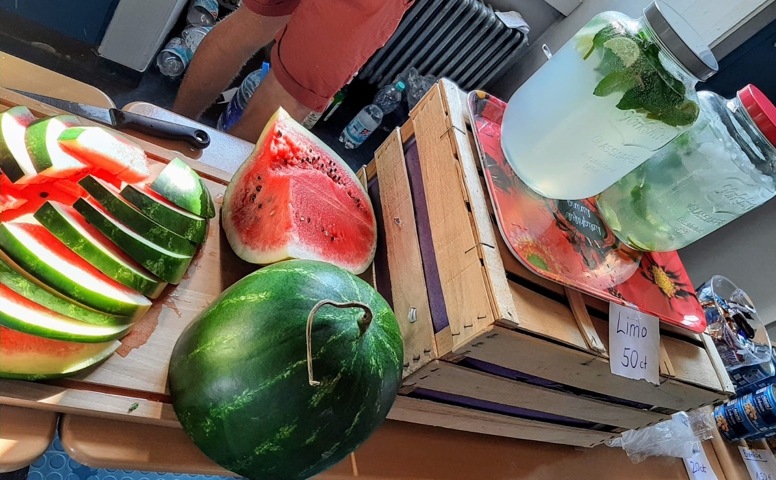 Die SMV verkaufte selber gemachte Zitronen-Minz-Limonade sowie Wassermelone. Wie schon beim letzten Kinoabend konnten sich alle Schülerinnen und Schüler vor dem Film mit Snacks und Getränken ausstatten.