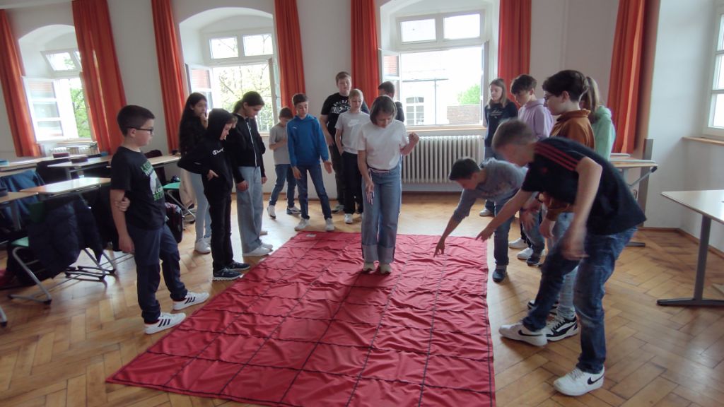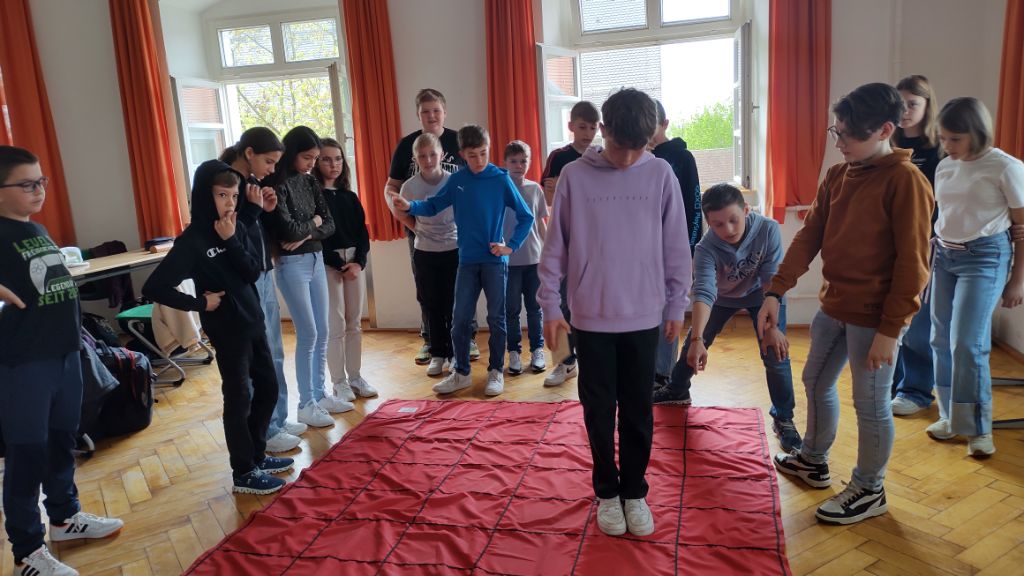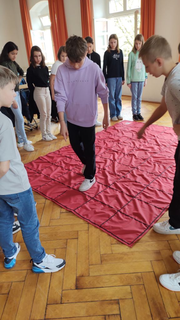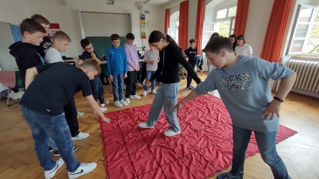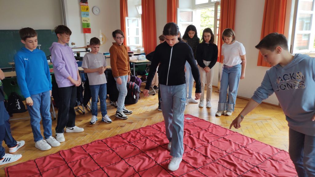 Die letzte Übung, die wir gemeinsam mit Ann-Marie zu lösen hatten, war ein Spiel namens "Der Weg", bei dem man sich als Klasse ganz genau merken musste, wie man über die einzelnen Kacheln laufen kann. Im Folgenden einige Eindrücke aus der Klassenlehrerstunde der 6a: